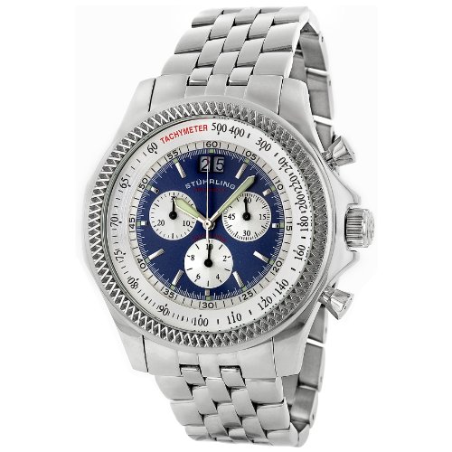 The exquisite Targa Pro timepiece from Stuhrling is fitted with one of the most accomplished chronograph movements obtainable in Switzerland. This stunning chronograph watch is made with 13 jewels and the finest stainless steel, including a steel link bracelet, bezel, and 50-millimeter case. Framed by a milled, crisscross patterned bezel and a tachymeter outer dial, the blue dial features a date calendar at 12 o'clock, a 30-minute sub-dial, a 10-hour counter, and Luminova-filled hour and minute hands. Powered by Swiss quartz movement, the Targa Pro is water resistant to 165 feet. Read more...