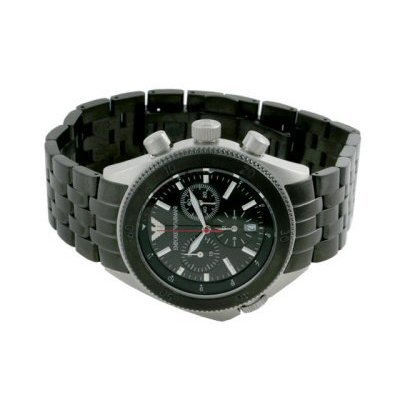 This Emporio Armani watch is an excellent time piece the represents what Emporio Armani is all about. A solid stainless steel case and band makes this watch look great on anyone. Featuring a black face, 100m water resistance, chronograph, stop watch, a date window at the 6 hour, and a bidirectional bezel. Read more...