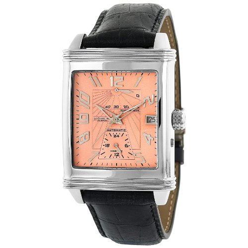 Offering the convenience of dual time, the Classic Men's 'Charleston' Dual Time Zone Watch from Stuhrling Original combines high-quality craftsmanship with a handsome, contemporary design. Made from antimagnetic 316L surgical grade stainless steel, a rectangular case surrounds a dramatic and elegant salmon-colored dial, complete with silver-tone hands and Arabic numeral hour markers, as well as a date display at three o'clock. A comfortable and laidback leather strap completes the professional, yet relaxed look. Water resistant to 165 feet, the Charleston provides the reliability and traditional appeal of automatic self-wind movement. It arrives in an attractive orange presentation box along with instruction manual, and cleaning cloth. Read more...
