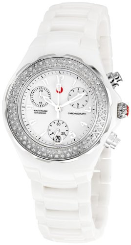 Stand out in the crowd wearing the sporty Tahitian Ceramic timepiece. One hundred sparkling diamonds circle the enamel dial, and the signature numerals and Swiss chronograph movement make this timepiece distinctively Michele. The ceramic bracelet is not interchangeable. This item will ship on July 28, 2008. Read more...