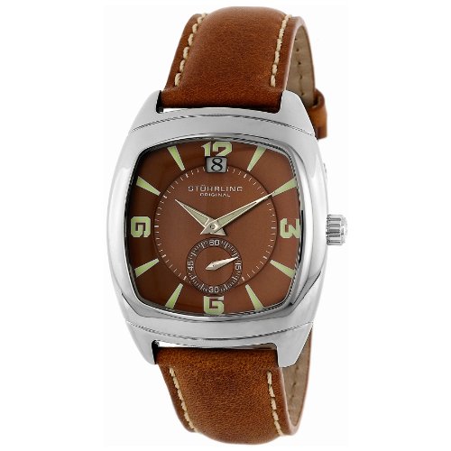 Contemporary design and sharp, eye-catching details make the Stuhrling Original Men's Lifestyle Princeton II Automatic Watch a stylish accent for any attire. This watch features green-tone markers and Arabic hourly indexes designed to stand out with bold, geometric shaping reiterated by sharp-edged hour and minute hands. Protected by a Krysterna crystal, the distinguished, brown outer dial and lighter brown inner dial are outlined by a sleek stainless steel bezel and a square case with handsome outward contours. An easy-to-read date calendar sits below the 12 o'clock, complemented by a convenient sub-dial above the six o'clock with a luminescent sweeping seconds hand silver-tone Arabic numerals in increments of fifteen. Sophisticated, brown leather bands match the watch's dial and stand out with contrast stitching. High in quality and style, the Princeton II boasts water resistance to 165 feet, reliable Swiss-quartz movement, and a distinctive Stuhrling gift box for an elegant presentation. Read more...